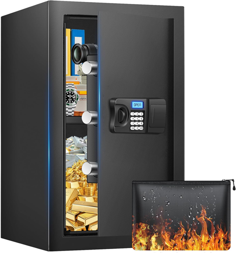 3.0 Cuft Home Safe with Fireproof Waterproof Bag, Anti-Theft Digital Security Safe Box, Smart Alert System, Removable Shelf, Mute Function, Personal Document Safe Box for Money Jewelry