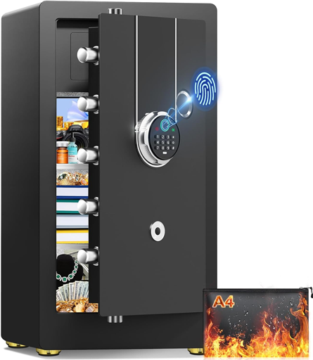 31.49'' Tall Heavy Duty Biometric Safe Box with Fireproof Waterproof Bag, Large Document Storage with Bottom Hidden Compartment, Anti-Theft Dual Alerts, Mute Mode, Digital Security for Business